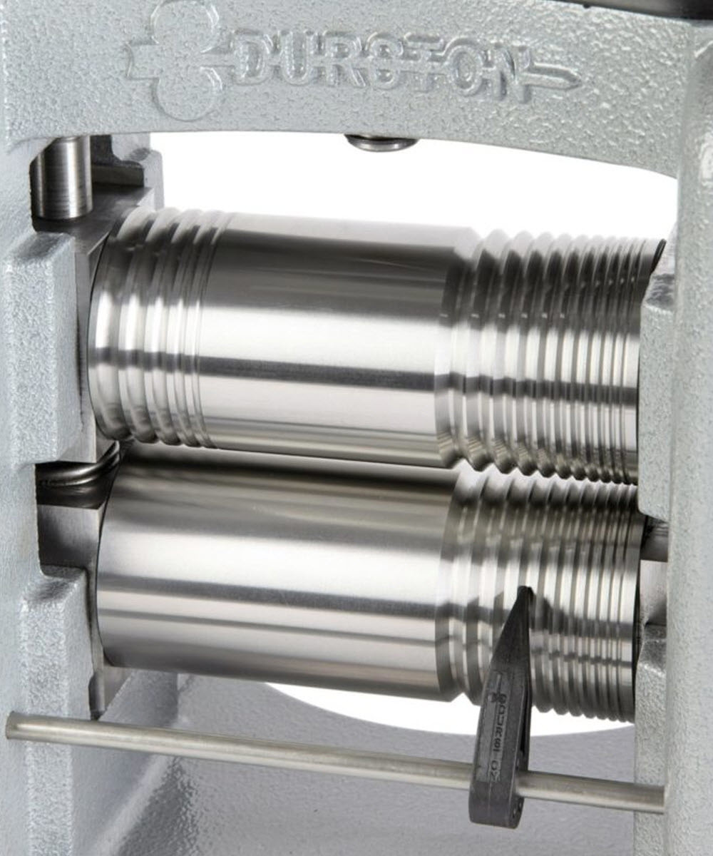 The Main Rolls are 130mm wide and feature 5 half round grooves, a 60mm flat rolling area and a further 11 square rolling grooves, as with all Durston Rolling Mills, the rolls are finished to the exact same high standards, induction hardened to 64RC to give ultimate strength.